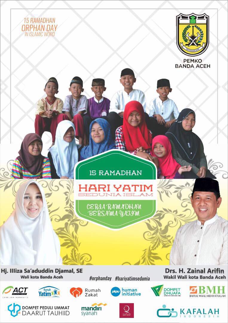 Banda Aceh –Aceh Monitor Com. Pemerintah Kota Banda Aceh akan kembali memperingati Hari Yatim sedunia Islam. Peringatan yang akan diikuti oleh 250-an anak yatim ini akan dipusatkan di Balaikota Banda Aceh pada 15 Ramadhan tepatnya pada hari Sabtu 10 Juni 2017.