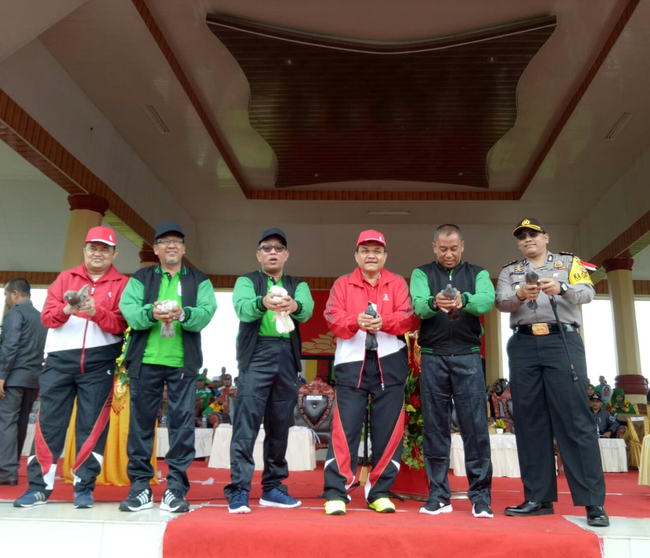 Pembukaan Porseni ditandai dengan menekan tombol ‘Seurunee’ dan pelepasan 16 burung merpati di panggung utama pagelaran kegiatan.