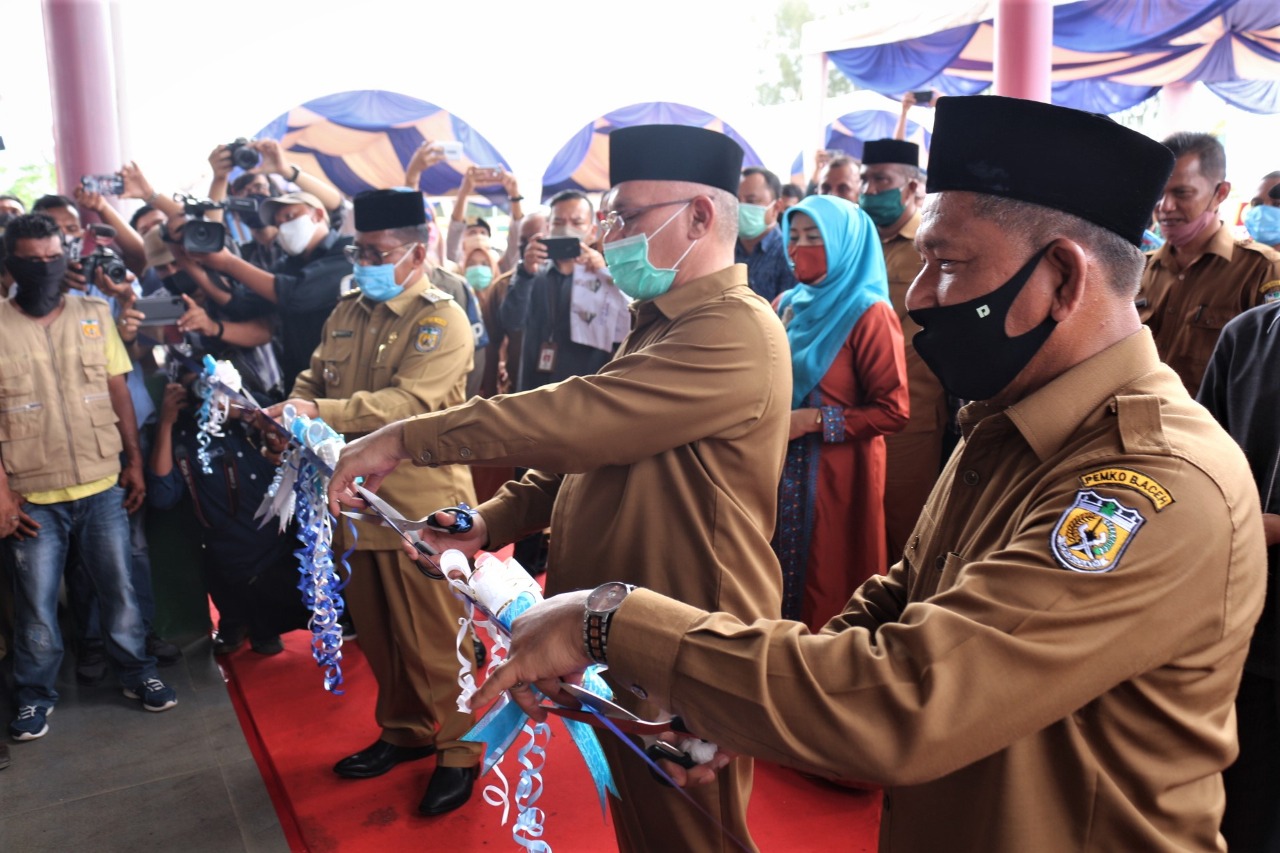 Banda Aceh – Aceh Monitor Com. Plt. Gubernur Aceh Ir. H. Nova Iriansyah, M.T yang diwakili oleh Sekretaris Daerah Aceh dr. Taqwallah, M.Kes, hari ini meresmikan Pasar Al-Mahira Lamdingin di halaman pasar. Selasa (07/07/2020).