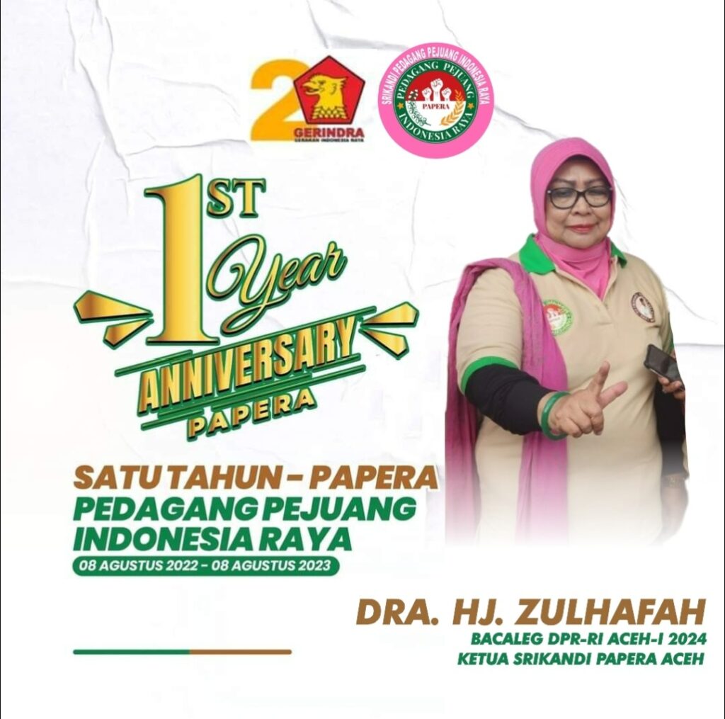 Dra H Zulhafah Tgk Hasan berharap kemerdekaan Republik Indonesia ke 78 menjadi bukti dan saksi keberhasilan Srikandi Papera Aceh memenangkan Ketua Umum Partai Gerindra Prabowo Subianto sebagai Presiden Republik Indonesia ke 8.