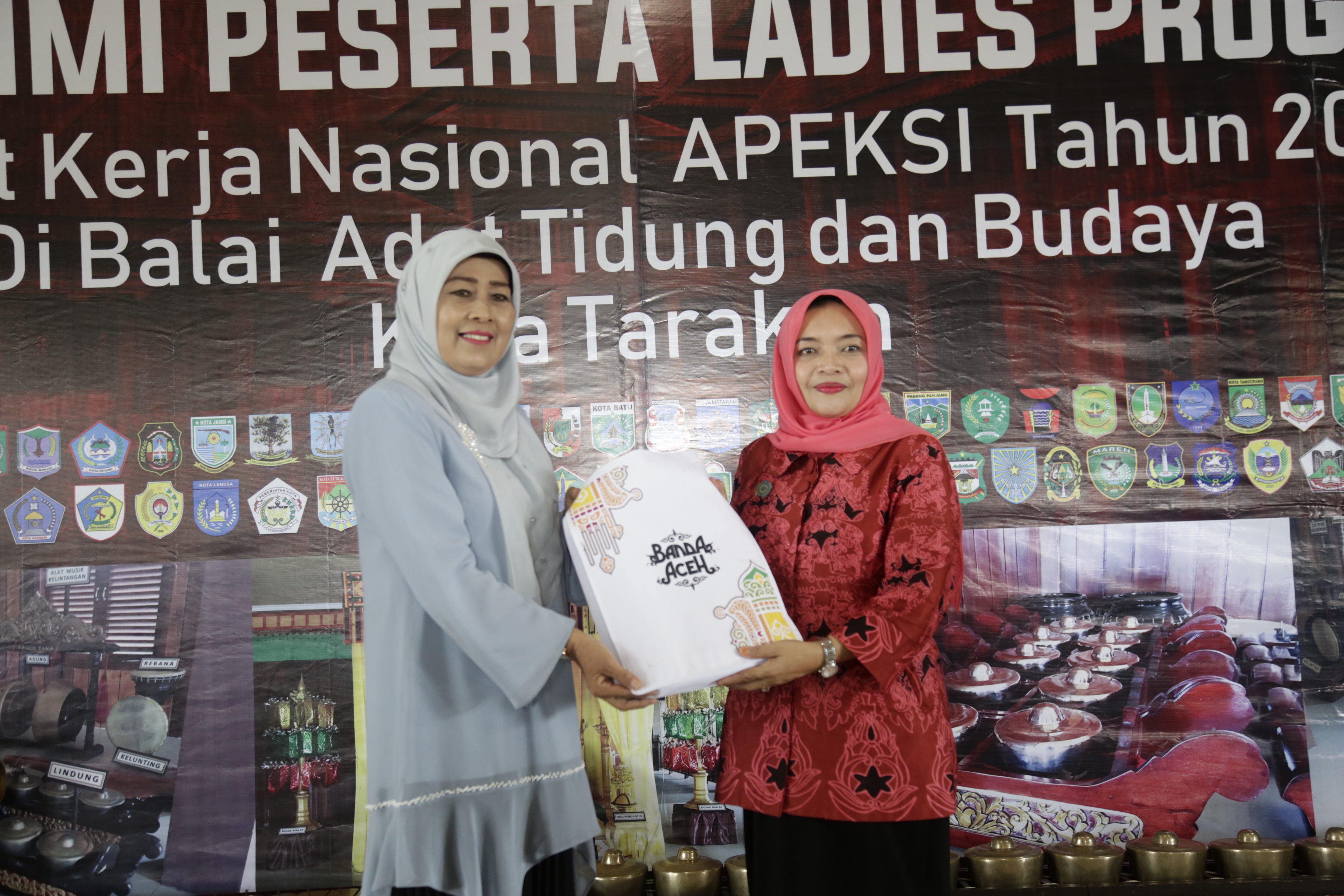 Selain memberikan cindera mata, Ibu Nurmiaty dan Ibu Fauziah juga menyerahkan plakat PKK Kota Banda Aceh kepada istri Wali Kota Tarakan itu.