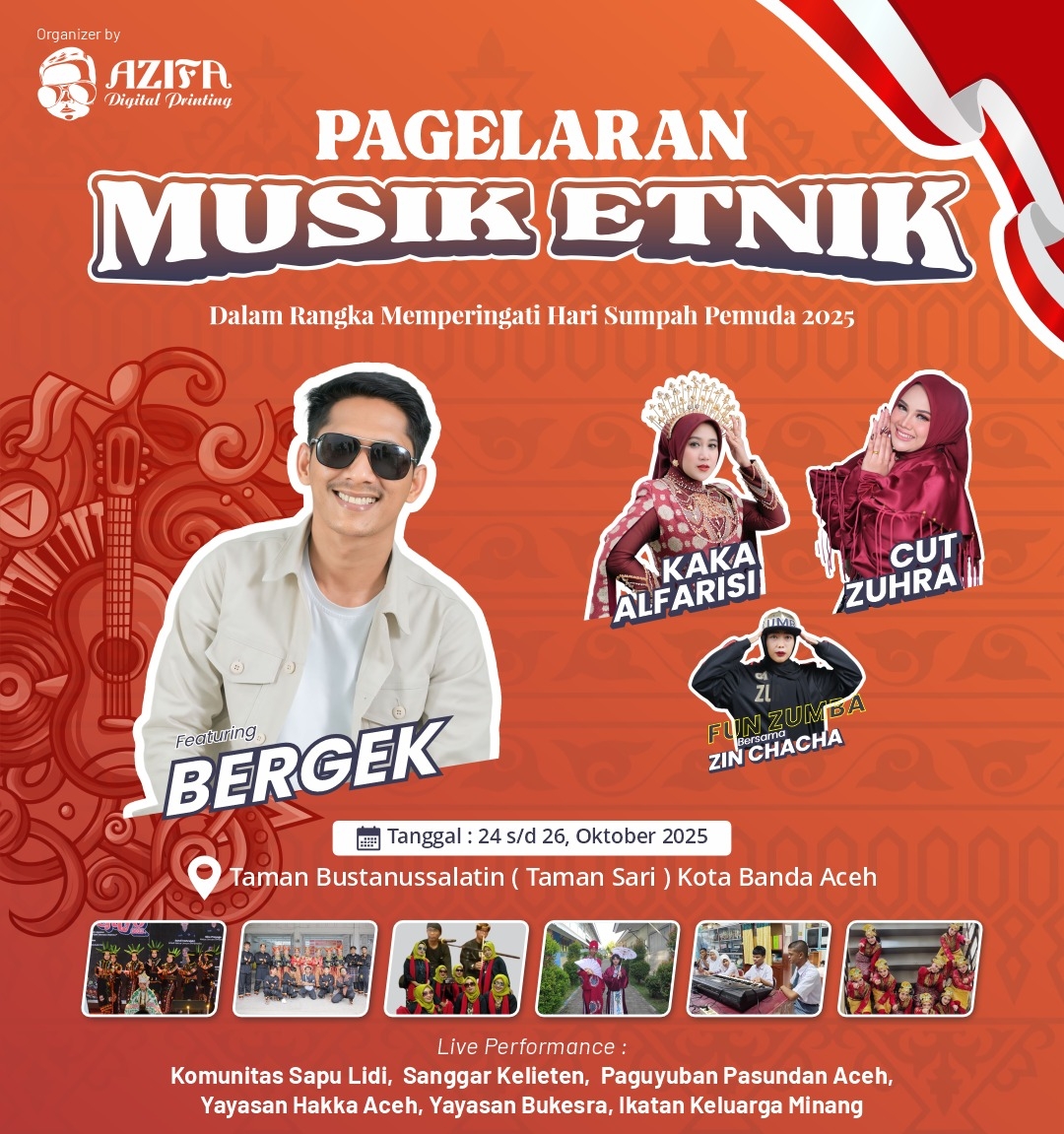 “Bergek , Cut Zuhra , Kaka Alfarisi dan Zin Chaca mereka semua dipastikan akan tampil di pagelaran musik Etnik 2025,” kata Yuka.