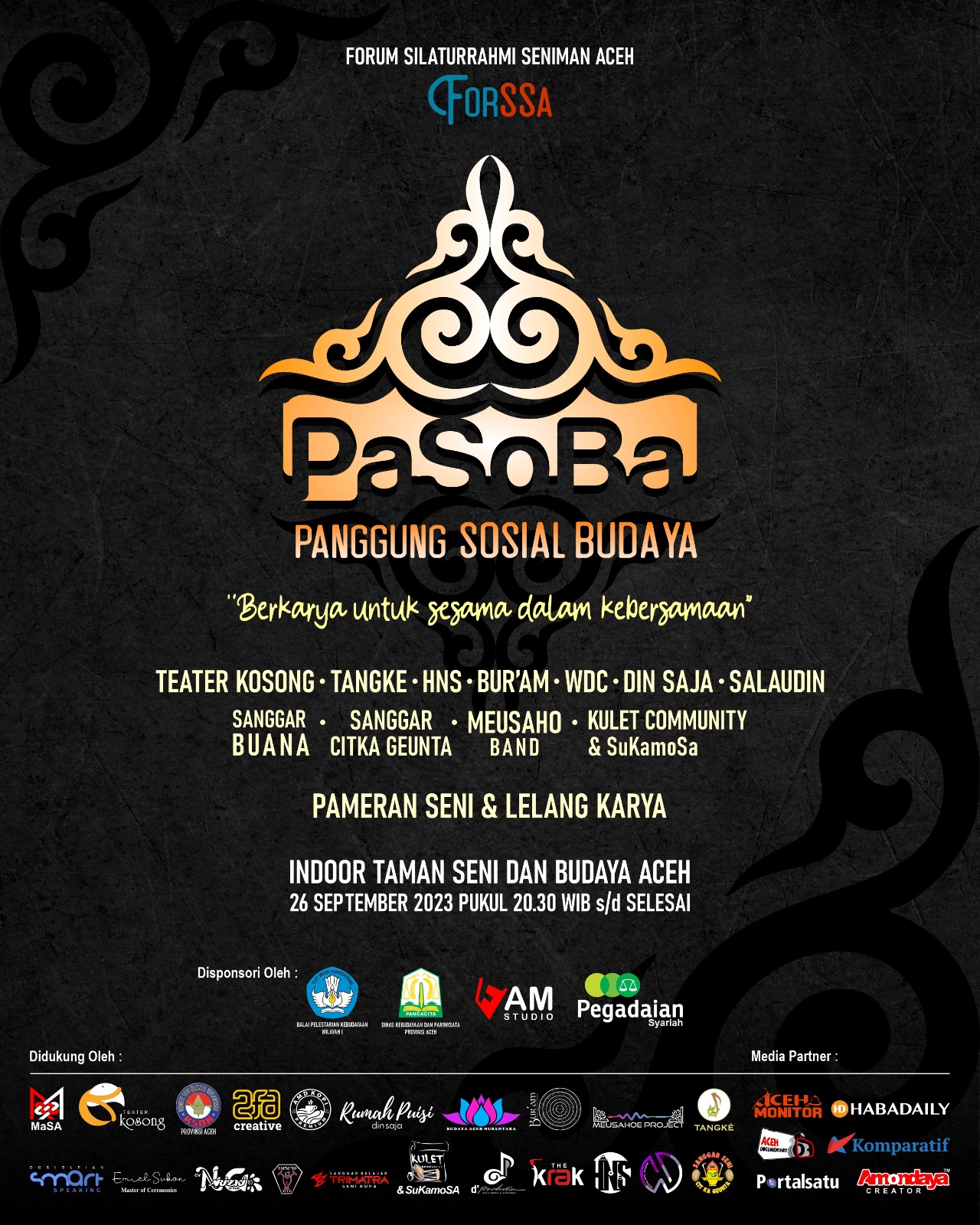 Banda Aceh – Aceh Monitor com. Para seniman Aceh yang tergabung dalam Forum Silaturrahmi Seniman Aceh (ForSSa) mengadakan Panggung Sosial Budaya bertajuk ‘Berkarya untuk Sesama dalam Kebersamaan’. Acara tersebut dijadwalkan berlangsung pada Selasa, 26 September 2023, di Ruang Tertutup Gedung Taman Budaya Aceh mulai pukul 20.30 WIB sampai selesai, Senin (25/9/2023).