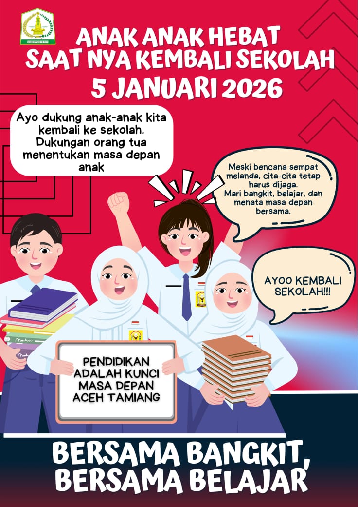 Tetapi kini proses belajar mengajar bisa berjalan kembali. Bupati Aceh Tamiang Drs. Armia Pahmi, SH, MH melalui Kepala Dinas Pendidikan dan Kebudayaan Sepriyanto menghimbau kepada para wali murid disemua jenjang pendidikan untuk dapat menyekolahkan anaknya mulai Senin, 5 Januari 2026.