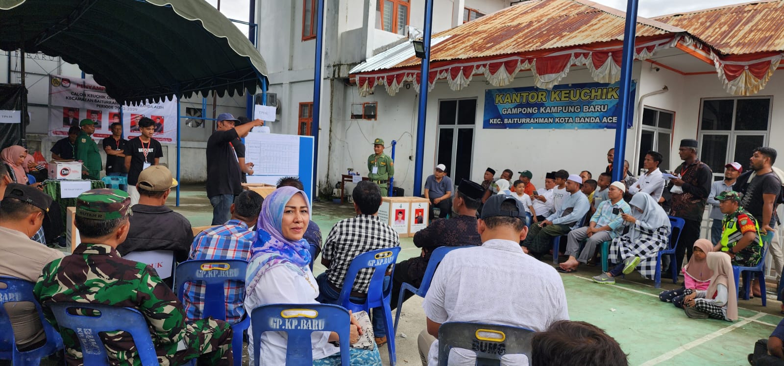 Anggota DPRK Banda Aceh Syarifah Munira juga meninjau Pilciksung Gampoeng Neusu Aceh dan melihat prosesi pemilihan yang berlangsung lancar.