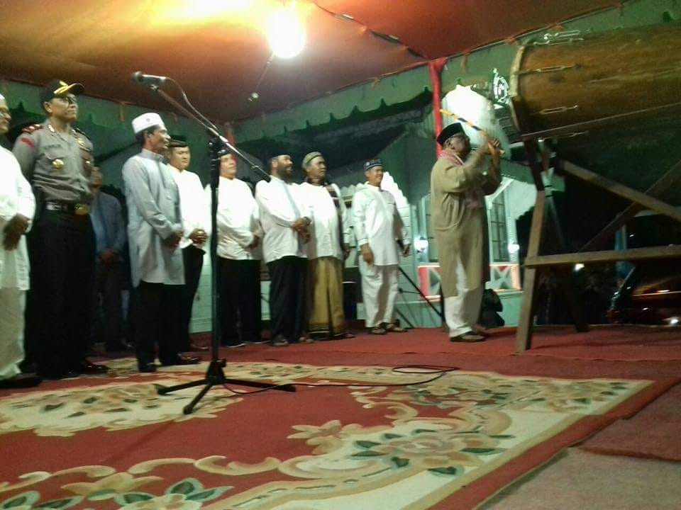 Bupati Bireuen H Saifannur SSos melakukan penabuhan bedug sebagai tanda datangnya 1 Syawal 1439 H.