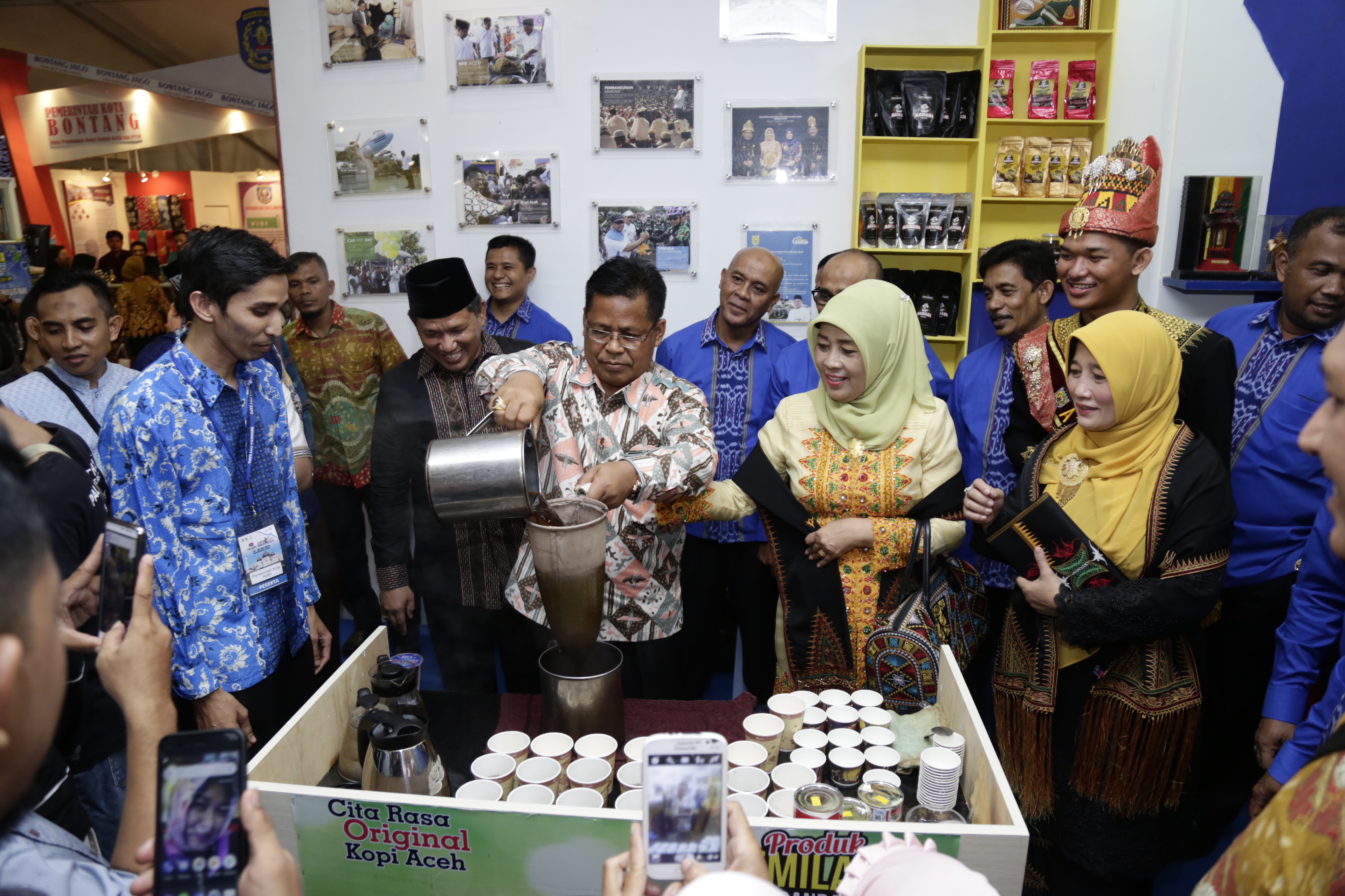 Wali Kota Banda Aceh, H Aminullah Usman memanfaatkan event Indonesia City Expo Apeksi tahun 2018 di Tarakan sebagi ajang untuk mempromosikan kopi Aceh.